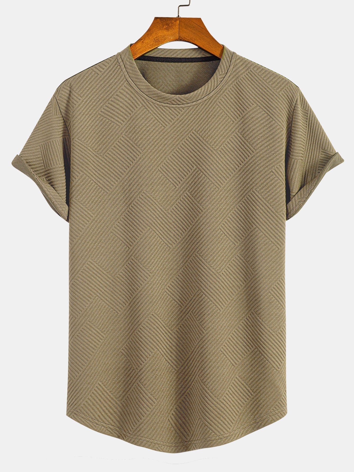 T-shirt à manches courtes en jacquard rayé avec ourlet en arc